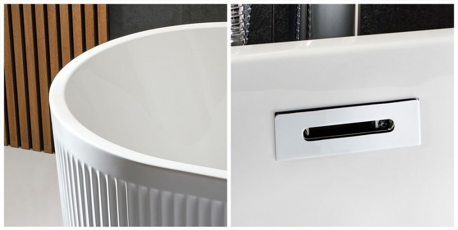 Design Tendance et Élégant : Osez la texture ! Le tablier extérieur de la baignoire RIVA se distingue par un motif cannelé vertical, offrant un relief visuel riche et une touche d'architecture moderne à votre intérieur.