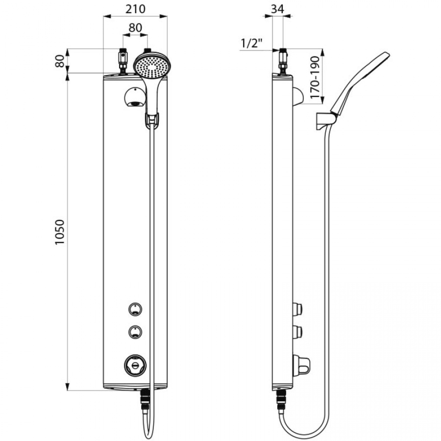 2 robinets temporisés ~30 secondes pour commande de douche fixe ROUND et du pommeau de douche avec flexible.