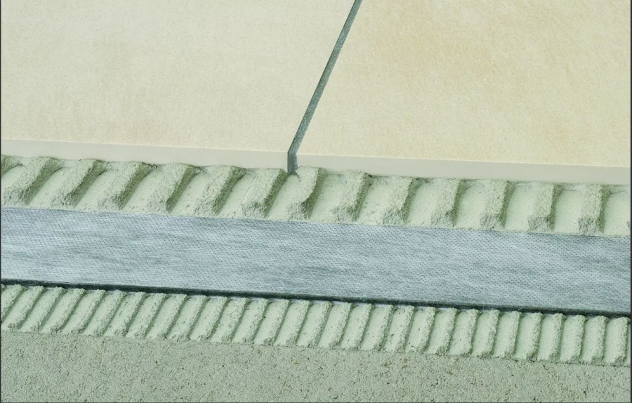 Le carrelage est mis en œuvre selon les règles de l’art sur Schlüter-DITRA-SOUND, le mortier-colle s’ancrant dans le non-tissé de la face supérieure des dalles. Cela permet de faire adhérer l’ensemble du système.