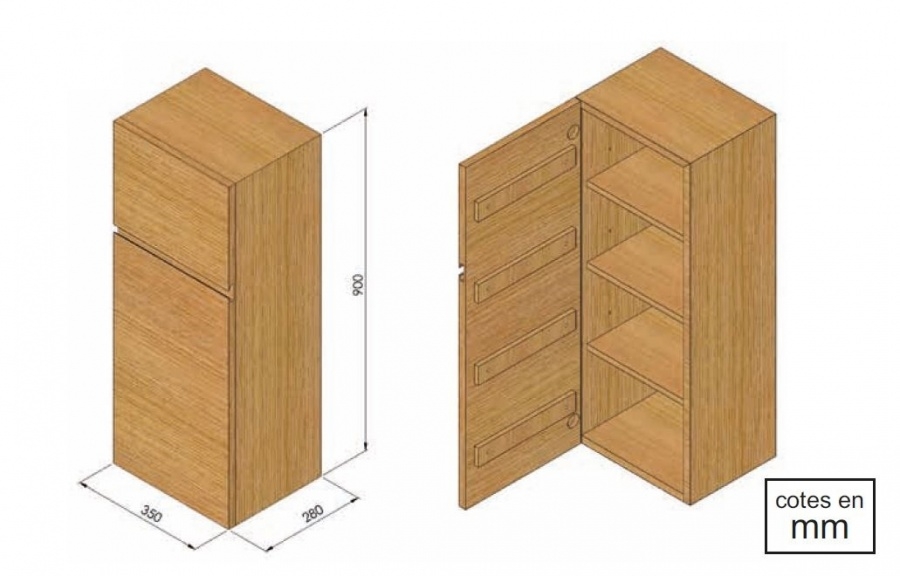 Dimensions : H 900 x L 350 x P 280 mm.