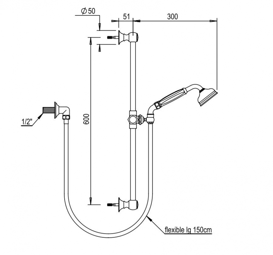 Sortie douche rail, flexible et douchette