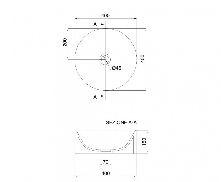 Dimensions : Ø400 x H150 mm
