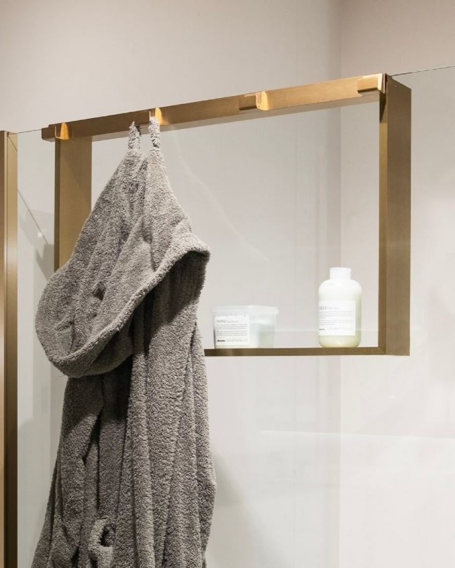 Étagère et crochet FRAME pour paroi de douche - Or Brossé