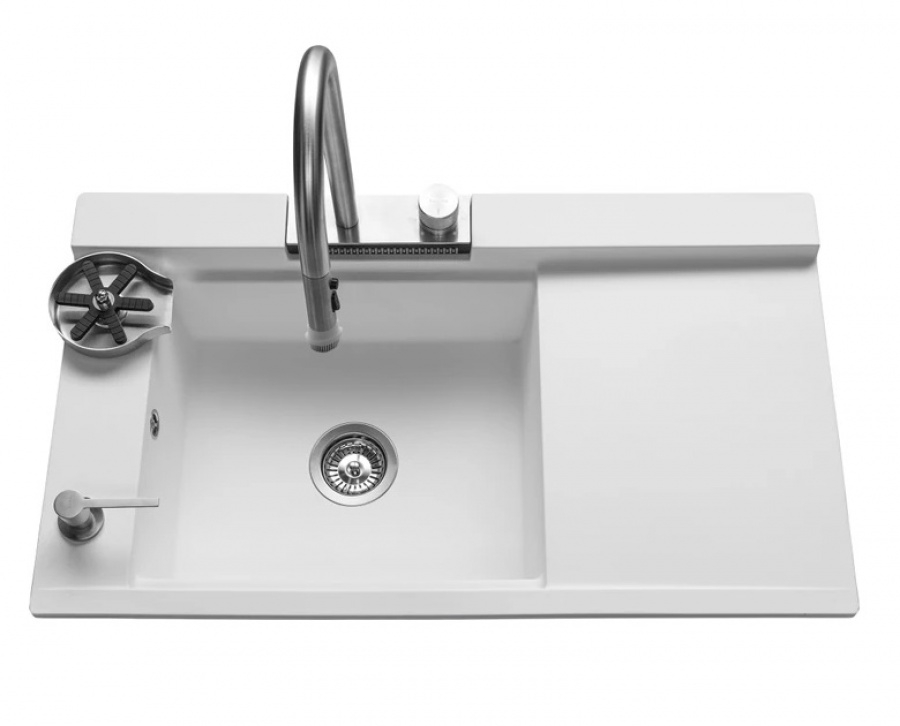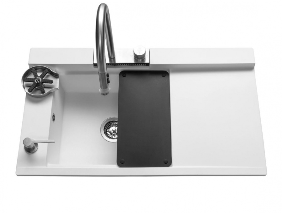 Description : Evier de cuisine multifonctions Blanc et Chrome - L910