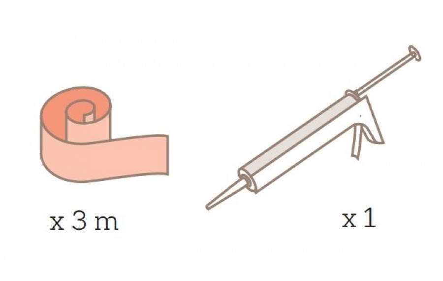 Le kit d'étanchéité sur chantier contient les composants qui s'adaptent au receveur de douche SolidSoft :