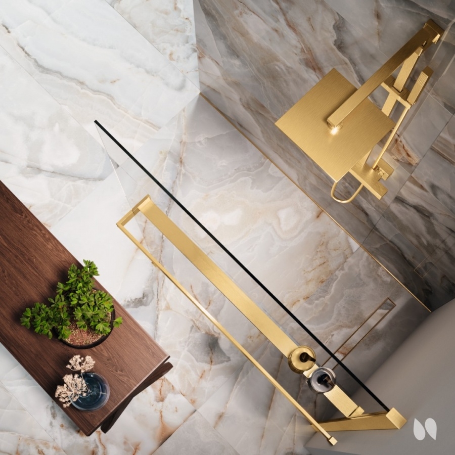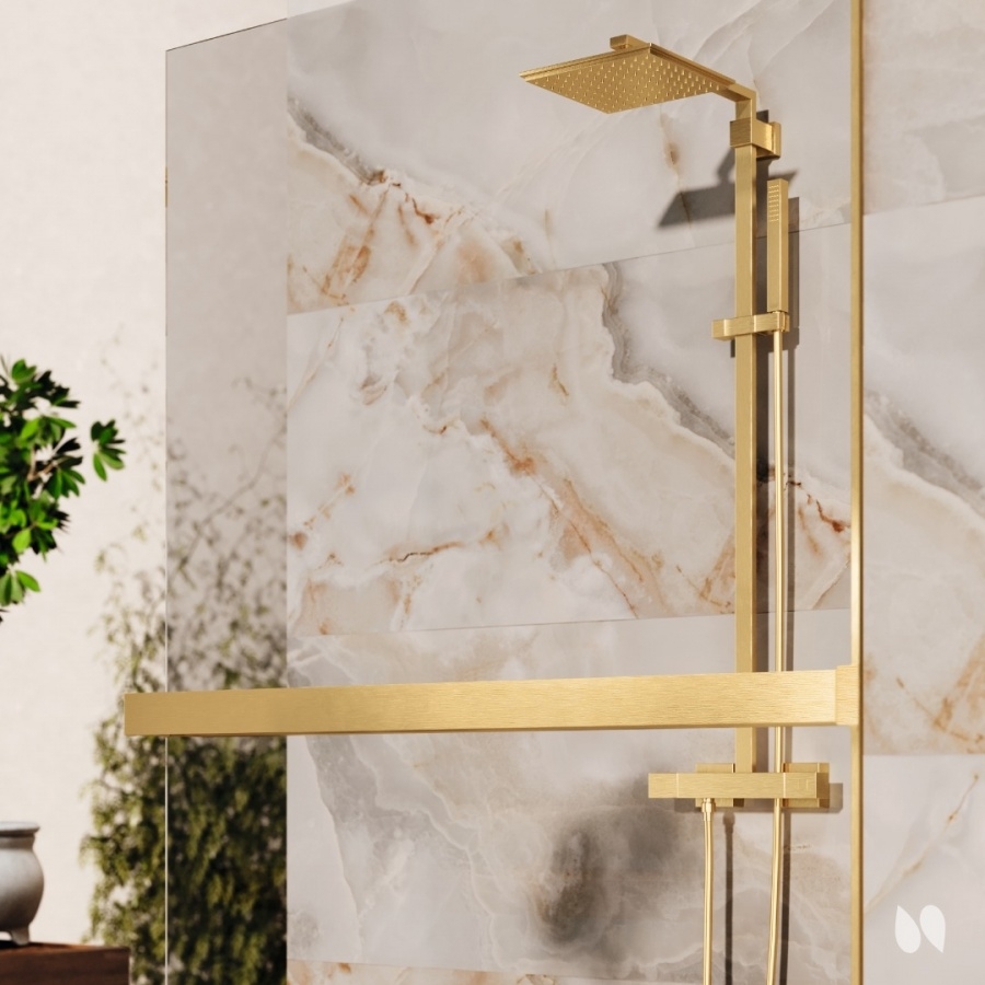 Kit FRAME HD Porte-serviettes + Tablette - Version Droite - 130-180 cm - Or brossé (Finition profils paroi : Autres , Taille Paroi douche : 130 à 180 cm , Version - sens : Version Droite )