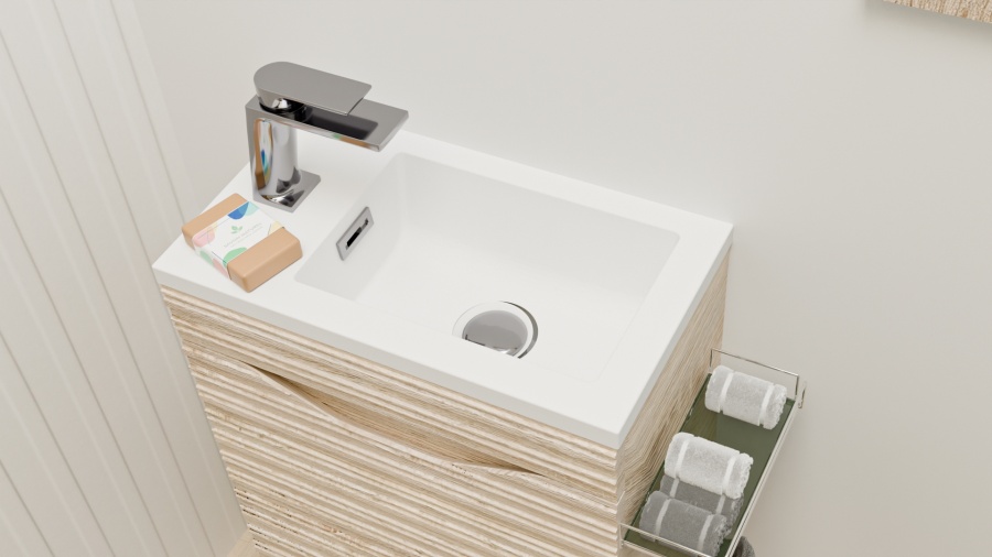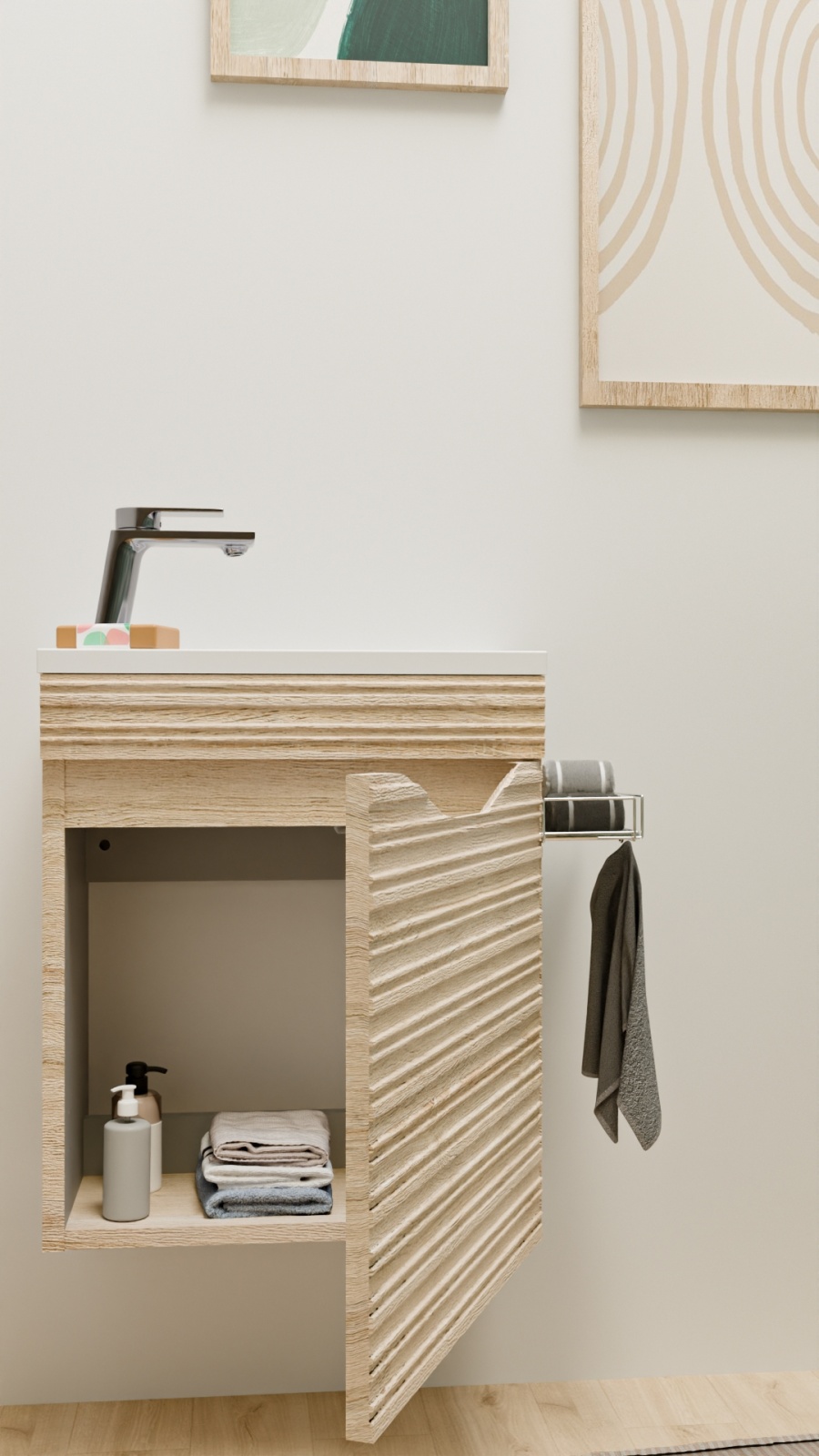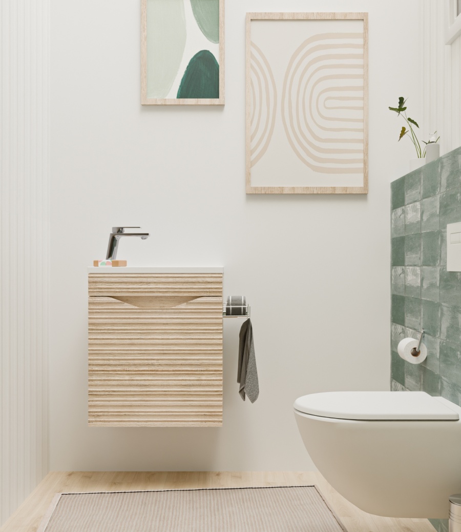 Lave-main Suspendu en Bois Clair : L’Élégance Texturée pour vos Petits Espaces