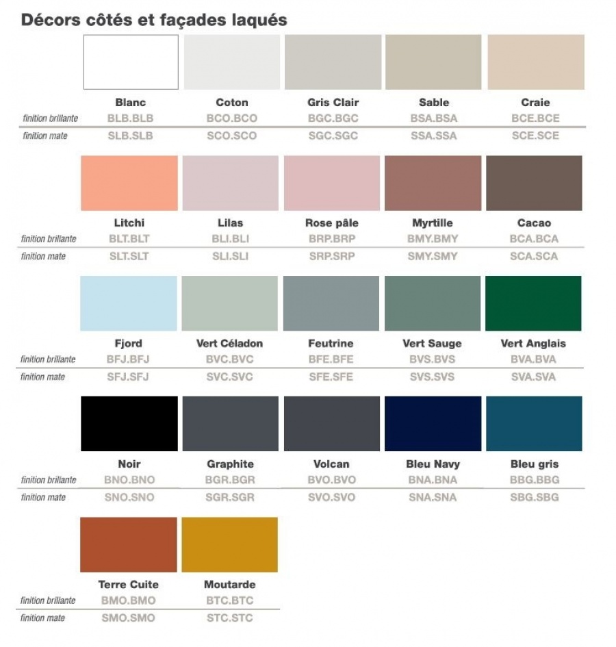 Disponible en 44 coloris, finition brillante ou satinée