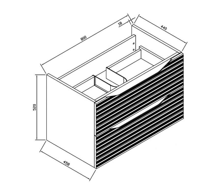 Dimensions : L800 x H520 x P458 mm.