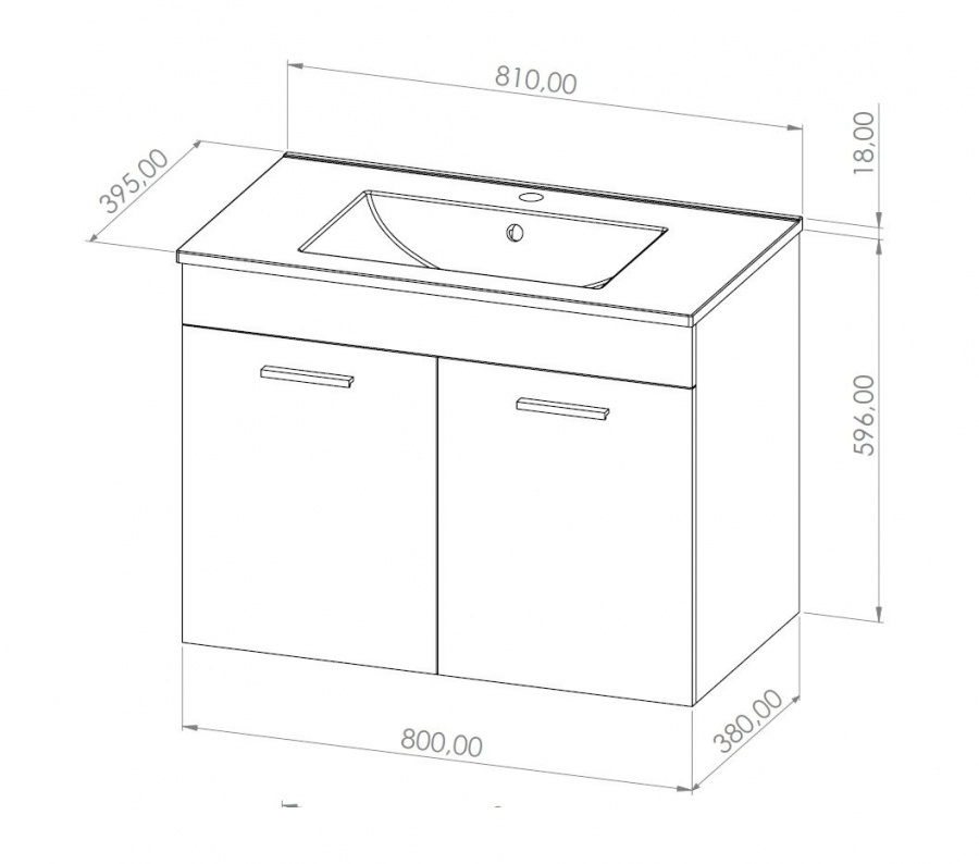 Description : Meuble de salle de bain TIXIKIT 80 en kit - 2 portes - Bois Clair