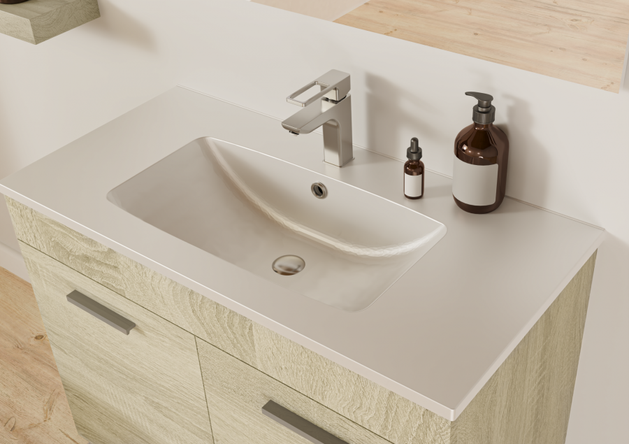 Fabriqué en céramique de haute qualité, ce plan vasque garantit une durabilité exceptionnelle. Le grès émaillé est reconnu pour sa résistance aux chocs, aux rayures, et aux produits chimiques. Sa surface non poreuse assure une hygiène impeccable et un nettoyage ultra-facile (anti-calcaire).