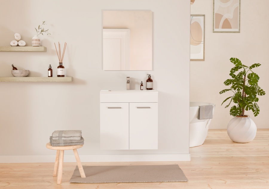 - 1 Meuble sous-vasque MINAO 60 Blanc 2 portes