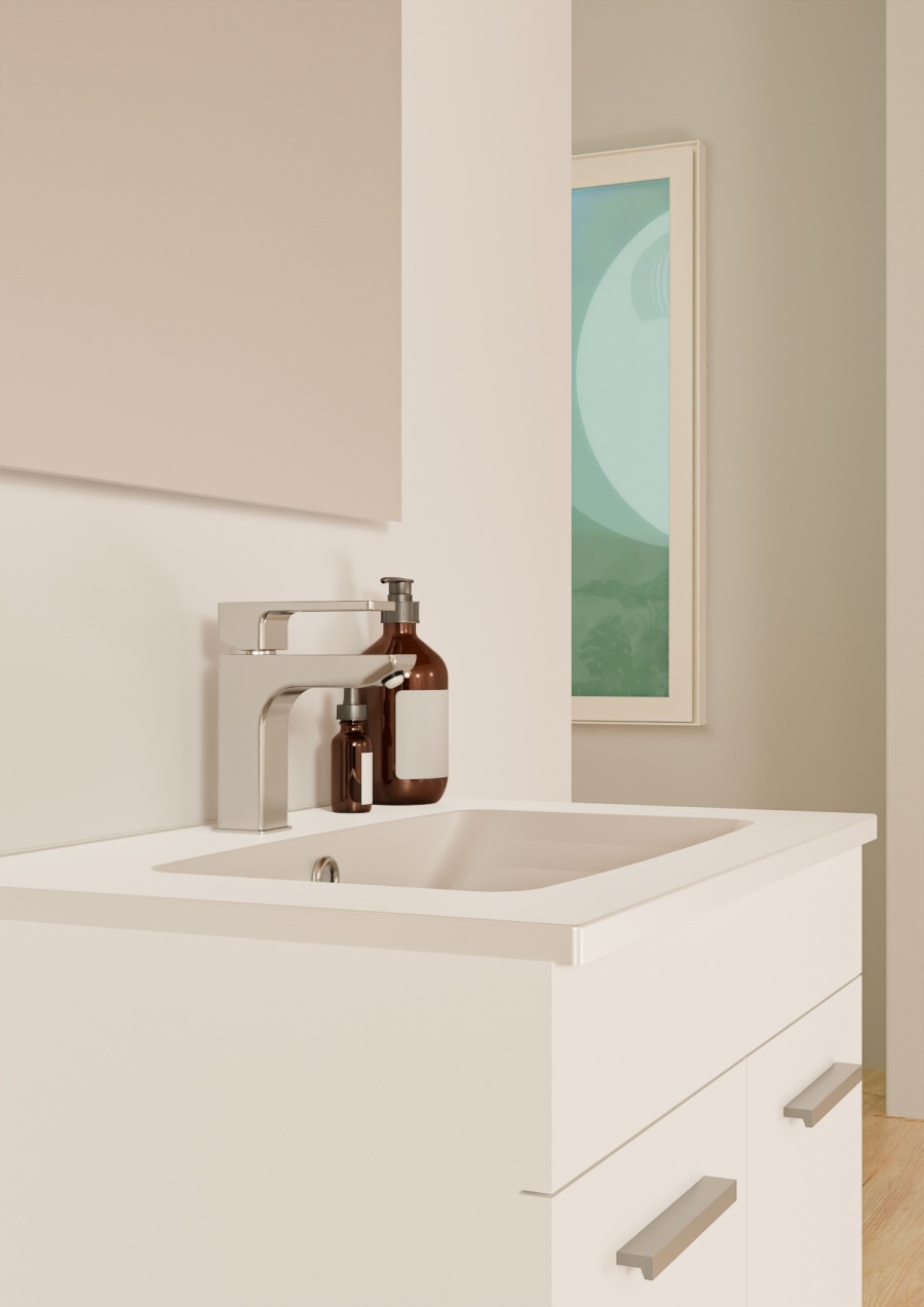 Avec une profondeur de seulement 39,5 cm, ce plan vasque est la solution parfaite pour les pièces où chaque centimètre compte. Il libère de l'espace de circulation et permet l'aménagement de salles de bain étroites ou de toilettes avec lave-mains intégré, sans compromettre le confort d'utilisation.