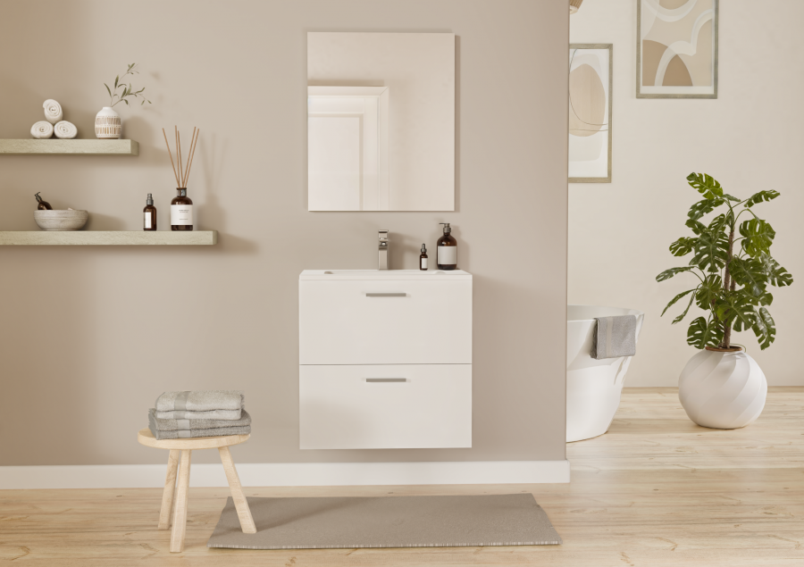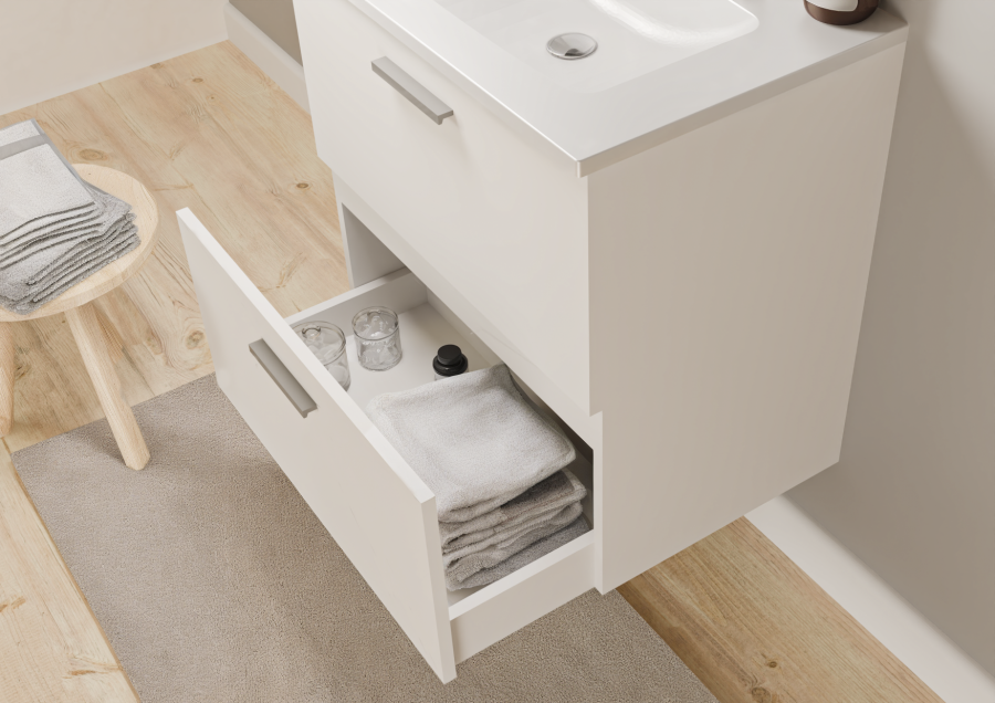 Meuble de salle de bain TIXIKIT 60 en kit - 2 tiroirs - Blanc Brillant