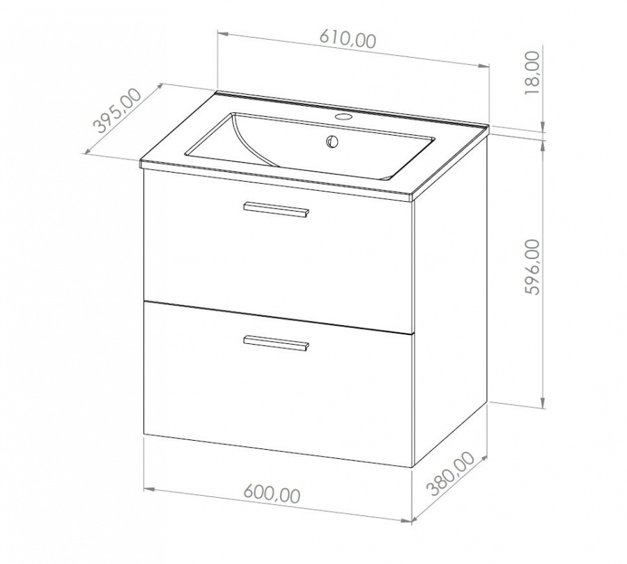 Meuble Salle de Bain Suspendu 60 cm – Faible Profondeur 39 cm – 2 Tiroirs, de la marque SANITAIRE