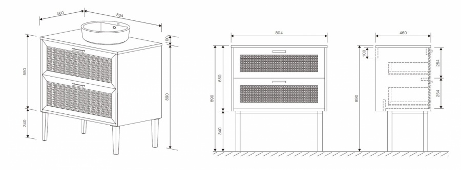 Dimensions : L804 x l460 x H550 mm