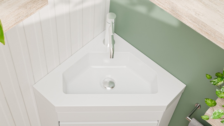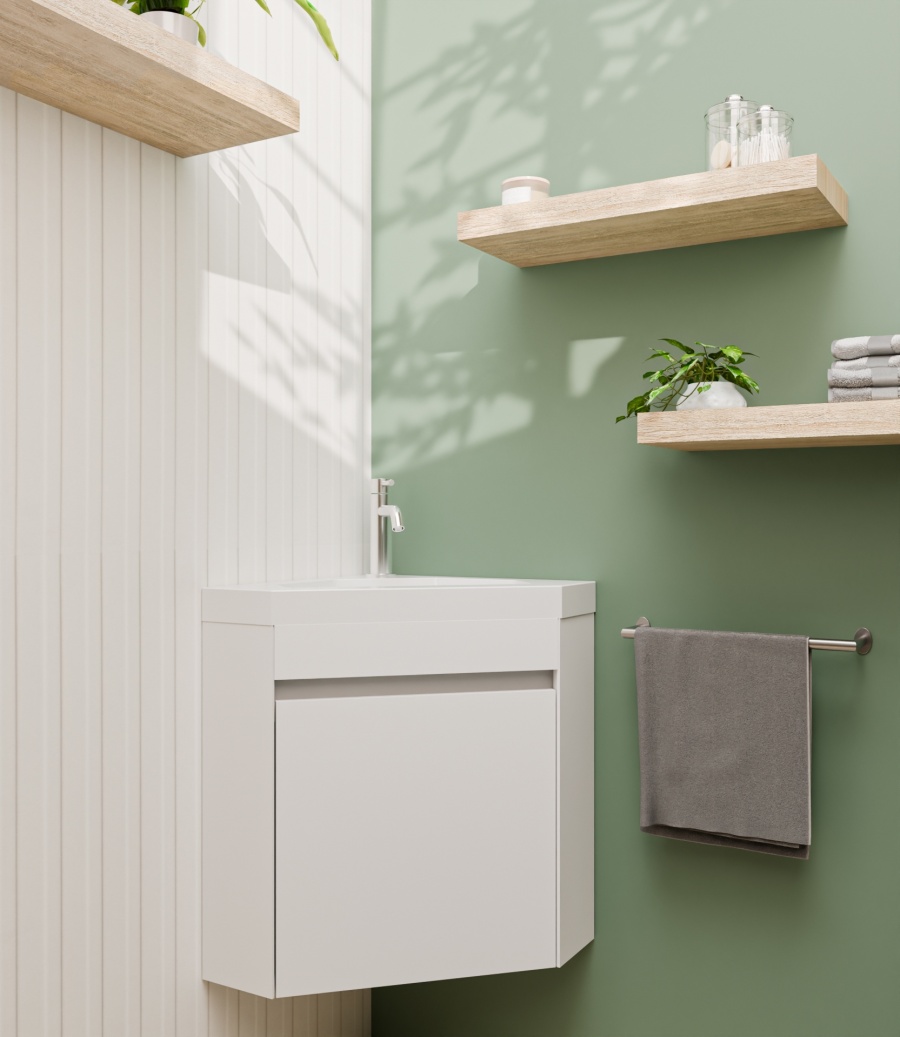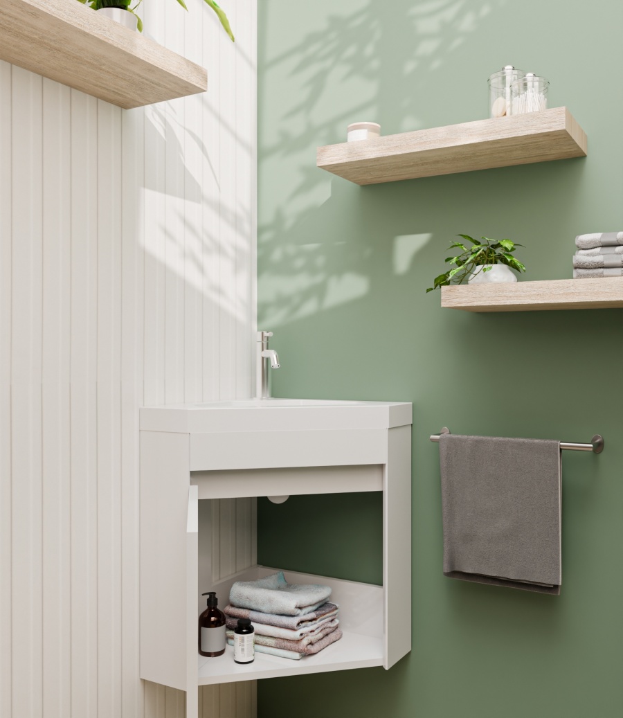 Ne laissez plus l'aménagement de vos WC ou de votre petite salle d'eau être une contrainte. Le lave-mains d’angle ANGLEO est conçu pour s'adapter à votre pièce, et non l'inverse.