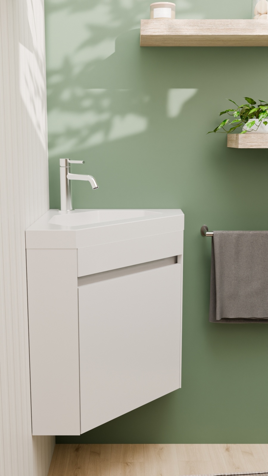 Lave-mains d'angle ANGLEO – Design Blanc Brillant et adaptabilité maximale