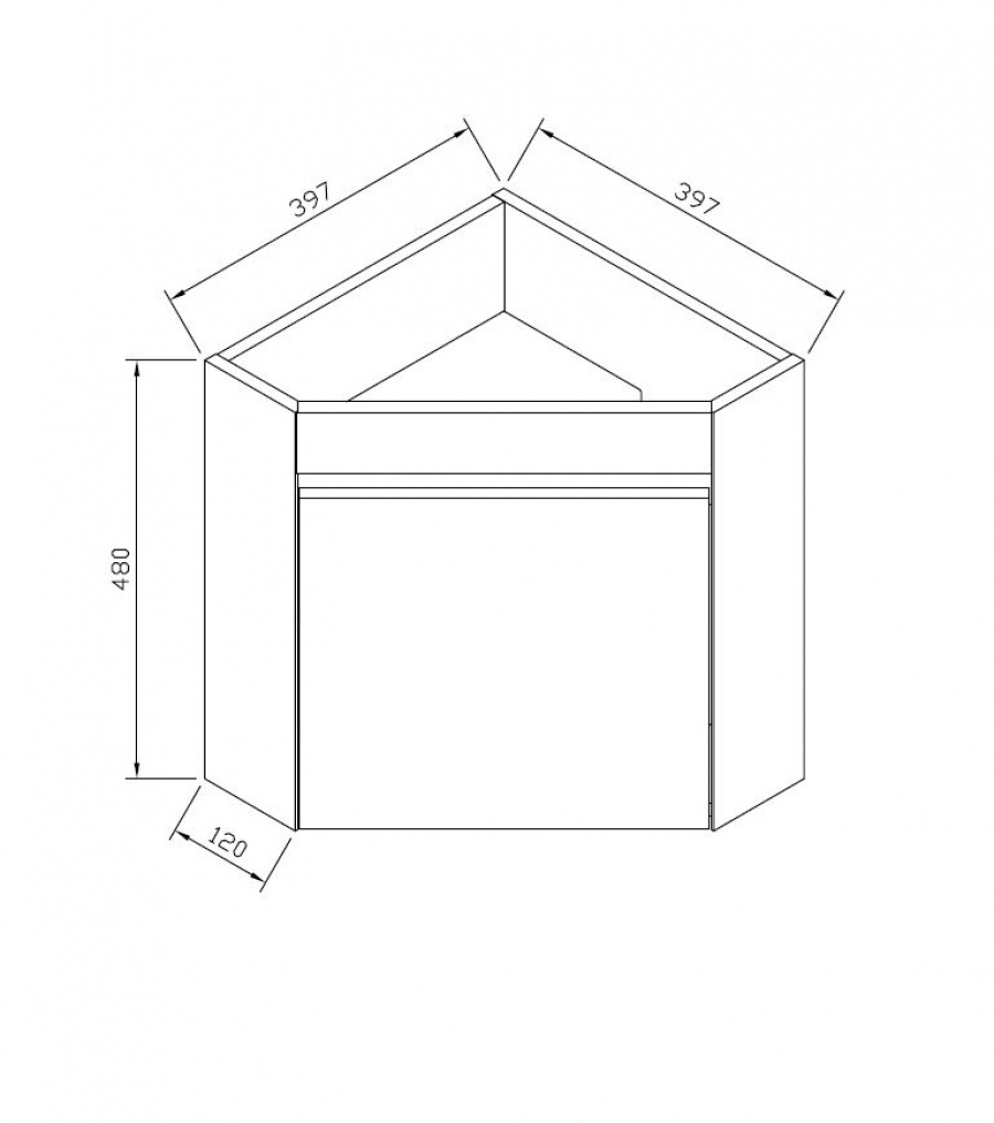 Profondeur latérale (pan coupé) : 120 mm.