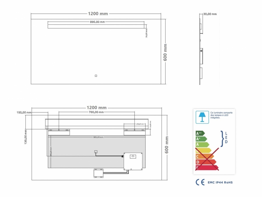 - 1 Miroir éclairant KATHY - 120x60 cm