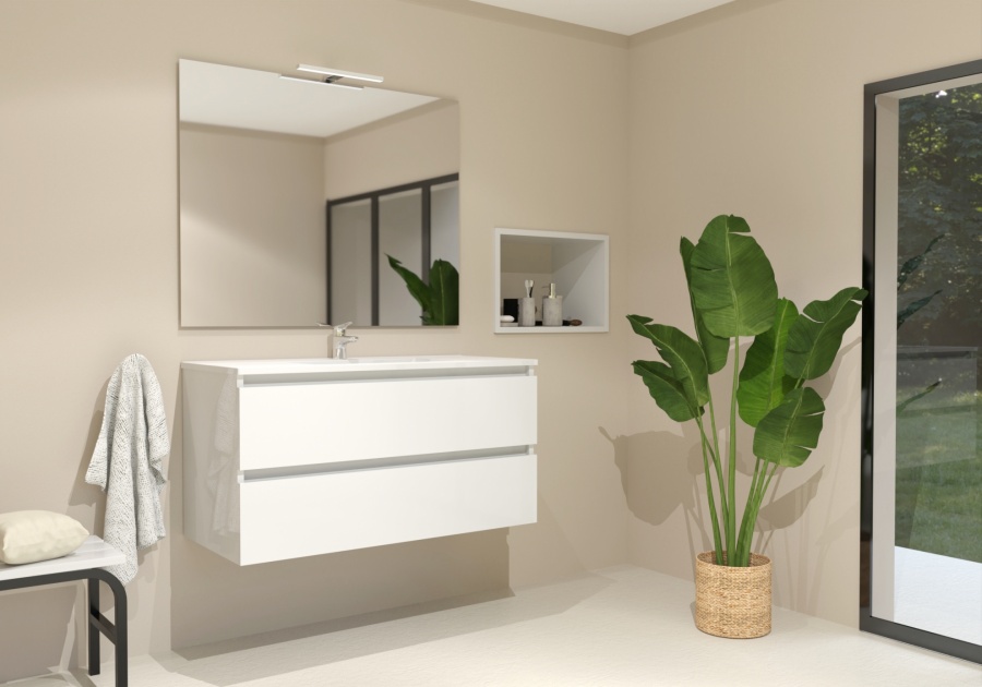 - 1 Meuble sous-vasque HALO 2 Tiroirs Blanc Brillant 100cm