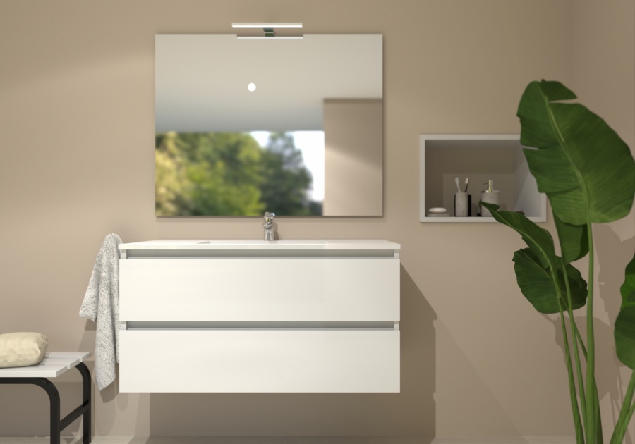 Meuble simple vasque HALO 2T 100cm Blanc Brillant