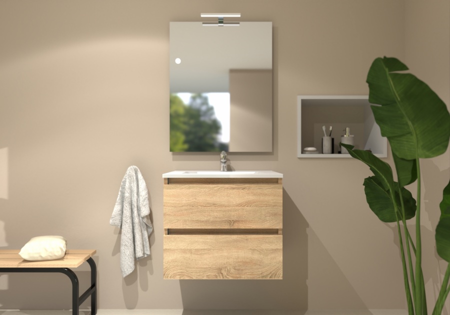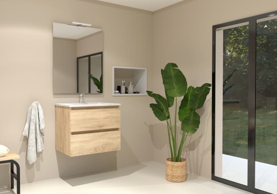 Meuble simple vasque HALO 2T 60cm Bois Clair