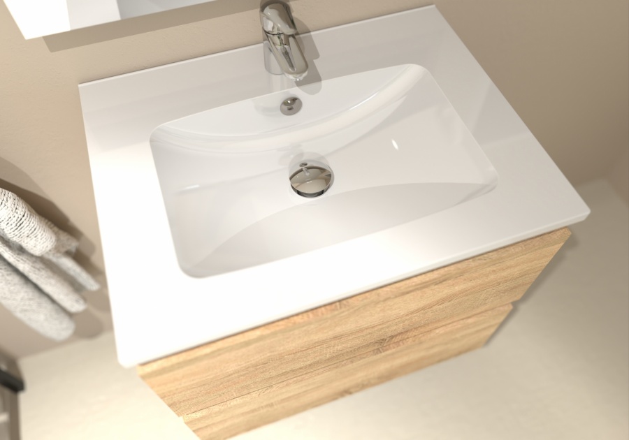 Description : Meuble simple vasque HALO 2T 60cm Bois Clair