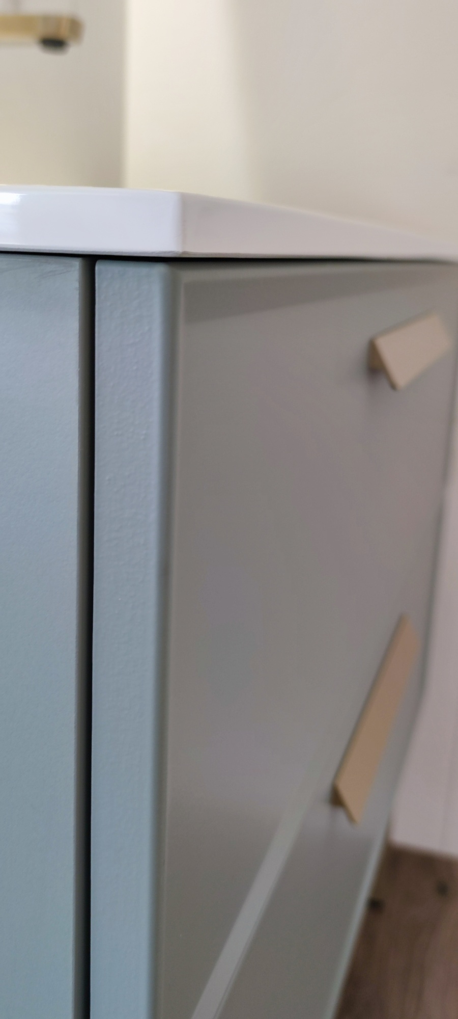 Meuble de salle de bain moderne avec des façades à cadre fin en finition ultra mat.