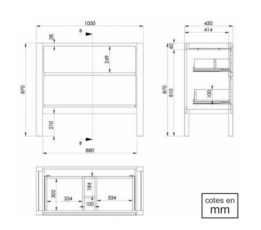 Dimensions disponibles : L1000 x H870 x P450 mm.