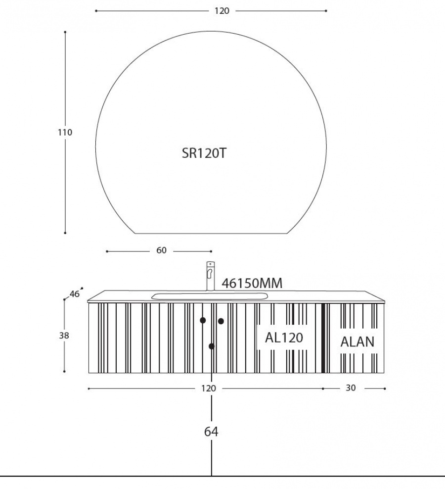 Le lavabo intégré en Mineralsolid mat offre un design moderne et raffiné, tandis que le miroir rond rétroéclairé SR120T apporte un éclairage délicat et une touche de style à votre salle de bains.