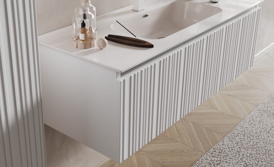 Ses lignes modernes, enrichies par des surfaces rainurées à effet latté, créent un jeu d'ombres et de lumières qui confère dynamisme et caractère.