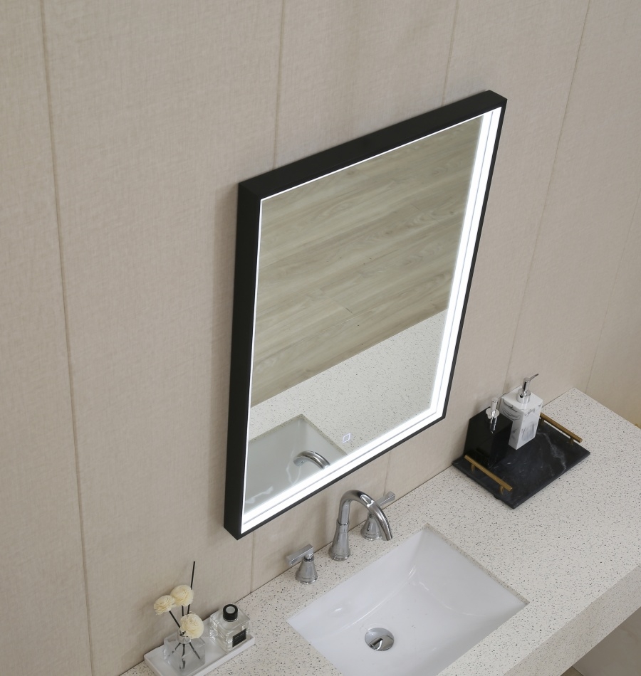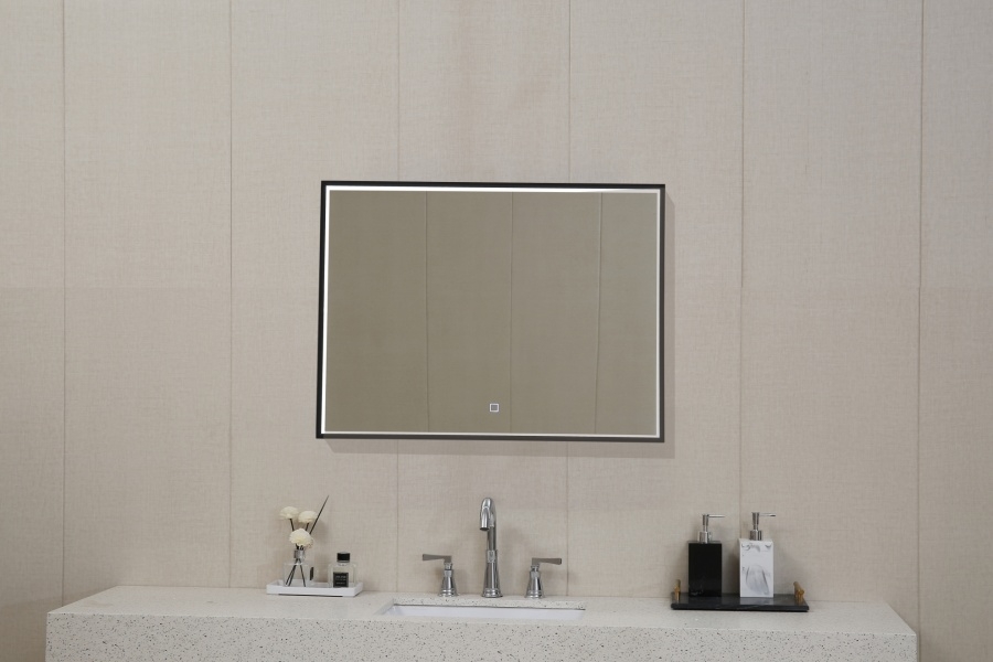 Description : Miroir avec cadre Noir Mat QUADRO rétroéclairé LED - 80cm