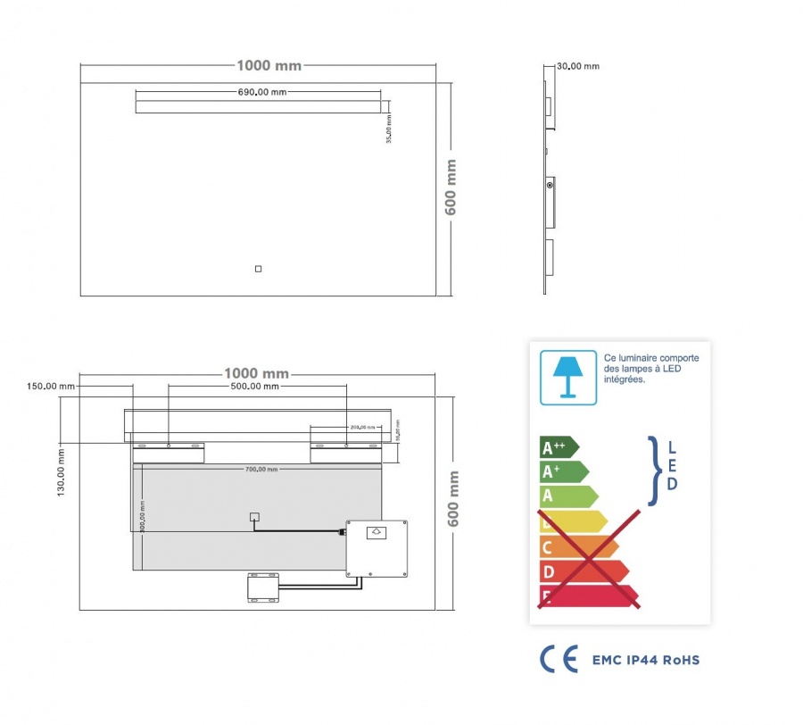 Avis client : Miroir éclairant KATHY - 100x60 cm