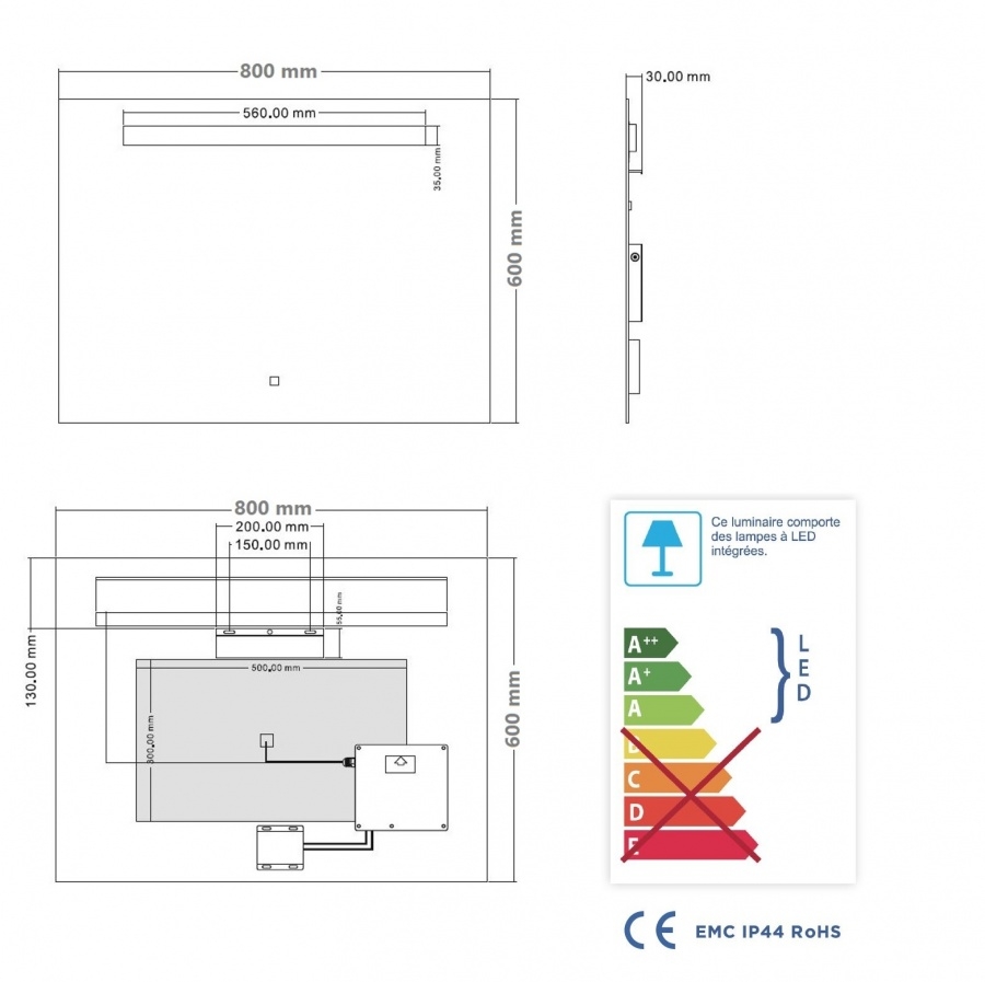Description : Miroir éclairant KATHY - 80x60 cm