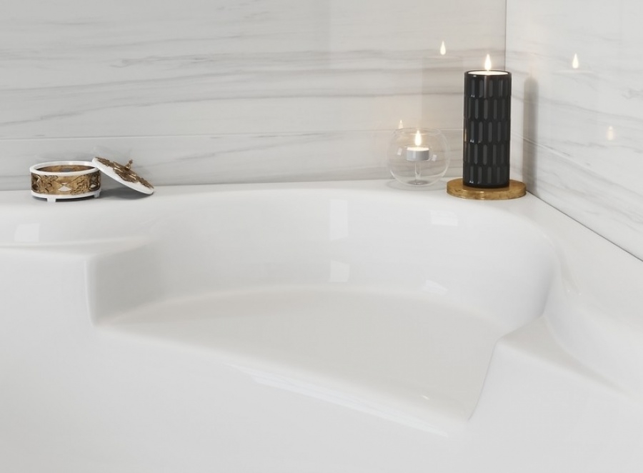 La baignoire symétrique VENUS 140 offre un intérieur confortable et spacieux, ainsi qu'un siège d'angle pouvant également servir d'étagère pratique pour les articles de toilette. Cette baignoire est équipée d'un écoulement central.