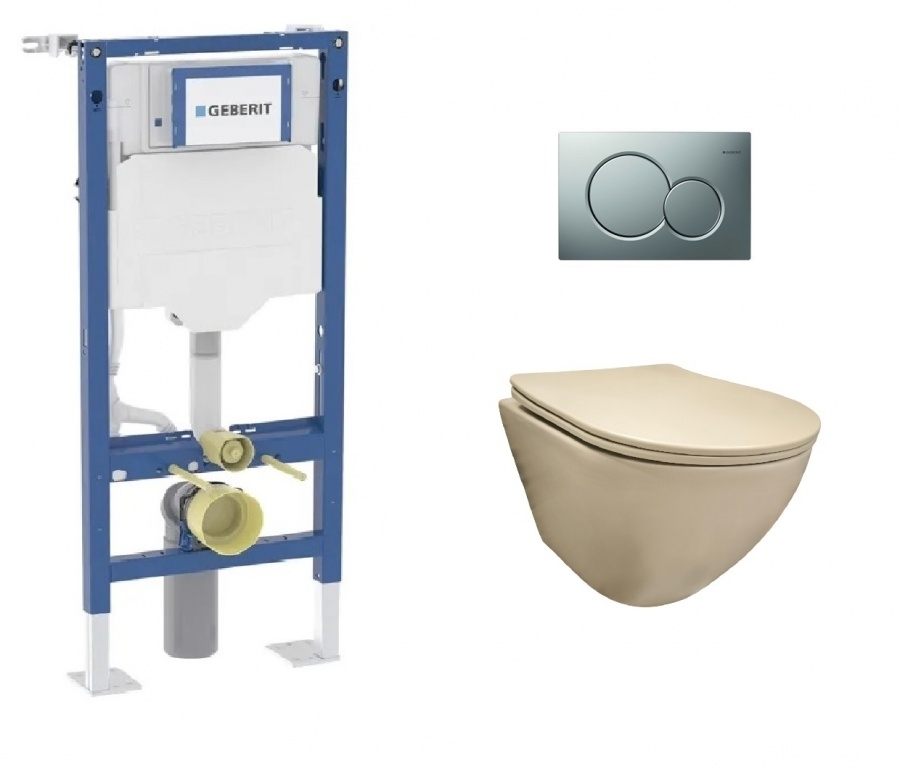 Pack Geberit UP320 + Cuvette KELOS Flush Beige Mat+ Plaque Sigma Chromé mat