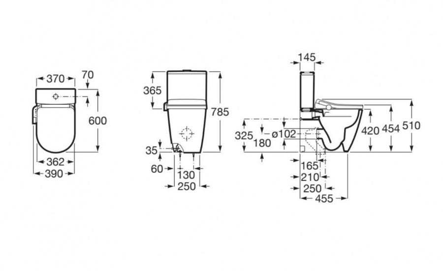 Pack WC au sol compact Rimless à évacuation duale adossé au mur réservoir, de la marque ROCA