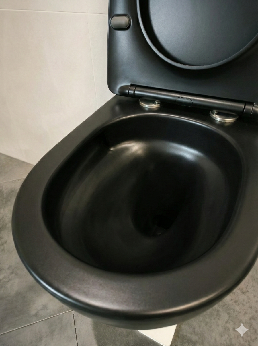 - 1 Cuvette suspendue sans bride KELOS Flush Noir Mat avec abattant