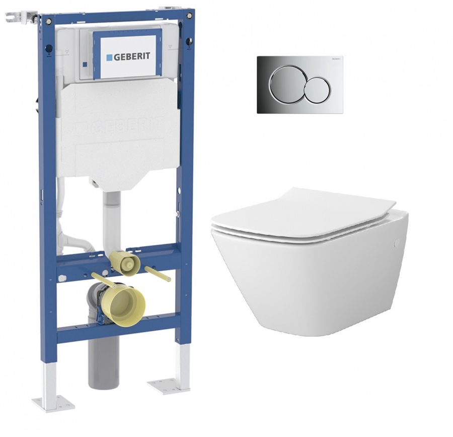Pack WC Geberit UP320 + Cuvette sans bride Mesto Square+ Plaque Chromé Brillant