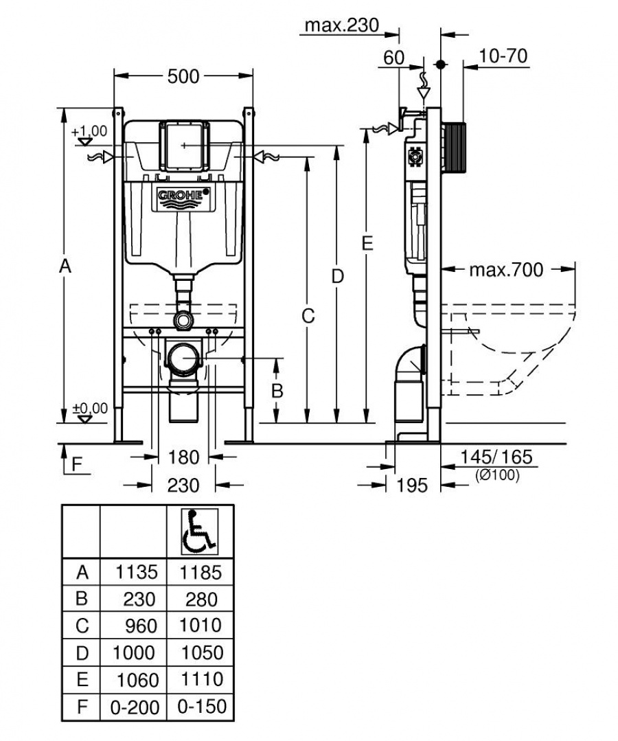 Ce bâti support intègre le réservoir de chasse GD 2 (6-9 L, réglé d'usine à 3 et 6 L) doté d'un mécanisme pneumatique certifié NF. Profitez d'une chasse d'eau silencieuse grâce à sa Classe Acoustique I et de l'isolation contre la condensation du réservoir. Le mécanisme est compatible avec les plaques de commande double touche (pour une économie d'eau optimale grâce à la technologie GROHE Water Saving / EcoJoy) ou simple touche (Start/Stop).