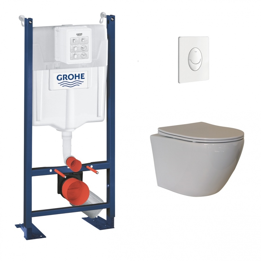 Pack WC Grohe Rapid SL Project + Cuv. KELOS Flush Blanc + Plaque Blanche