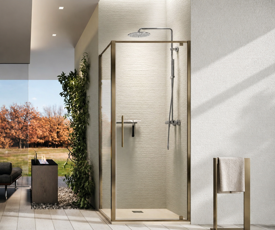 Paroi fixe latérale RIGA F à commander séparément pour une installation en angle.