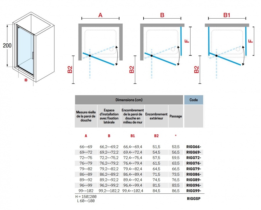 *Taille Paroi douche