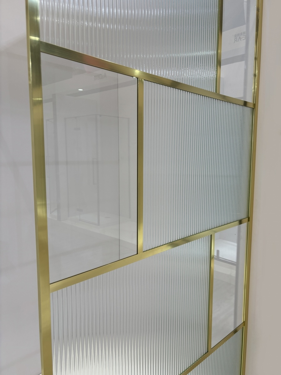 Verre en Relief (Cannelé/Strié) : Le motif en relief n'est pas seulement esthétique, il offre également une intimité subtile tout en laissant passer la lumière. Cette texture unique est la signature d'une salle de bain haut de gamme et actuelle.