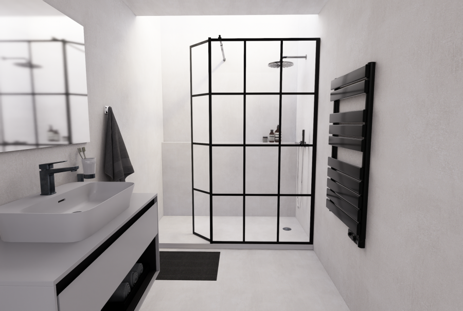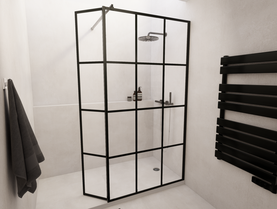 Paroi de douche fixe LOFT BLACK + volet pivotant, de la marque SANITAIRE