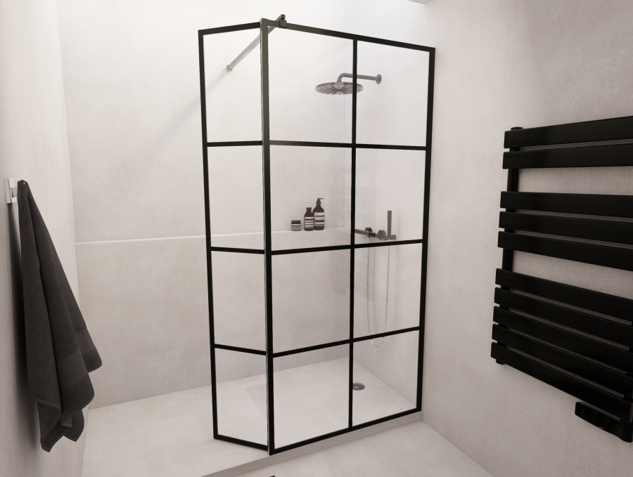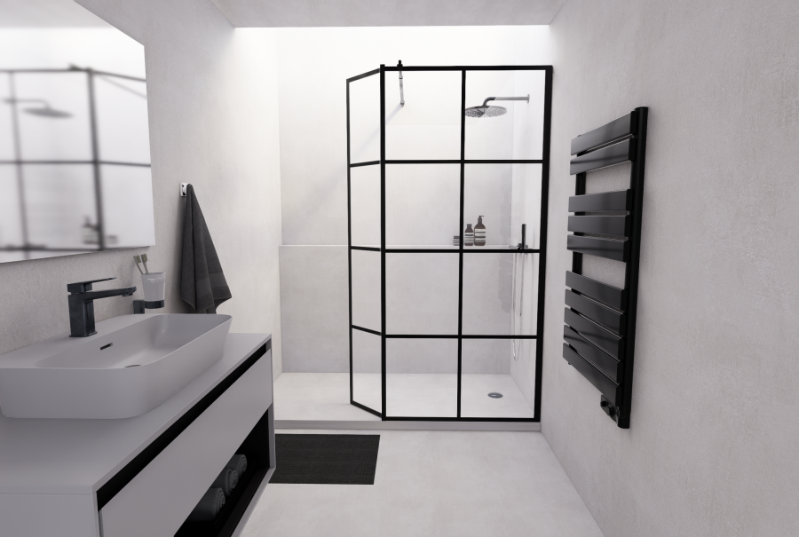 Description : Paroi de douche LOFT BLACK 90cm + Volet pivotant