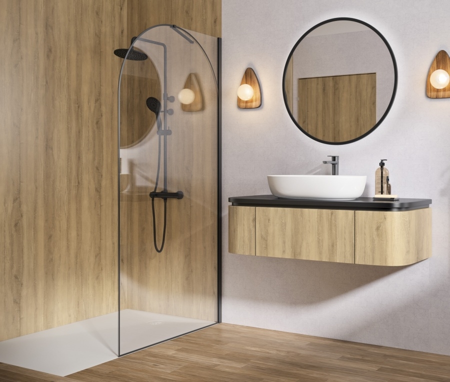 La paroi Arkade rompt avec la monotonie des lignes droites. Sa courbe et sa sérigraphie en arche doré apporte une touche de noblesse et de douceur, créant un écrin luxueux pour votre espace bien-être. Sa structure fine mais robuste souligne avec précision la zone de douche tout en conservant une sensation d’ouverture et de légèreté.