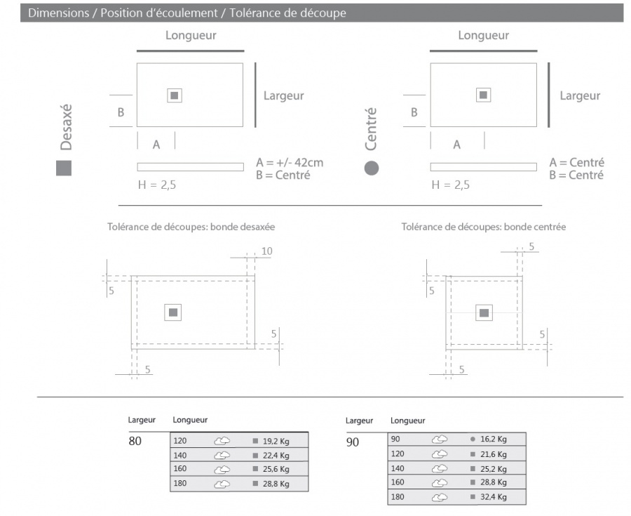 Receveur de douche léger SAMBA Neolight Blanc 80x120cm* (Classe antidérapant : PN24 : adhérence forte , Taille du receveur : 80x120 cm )