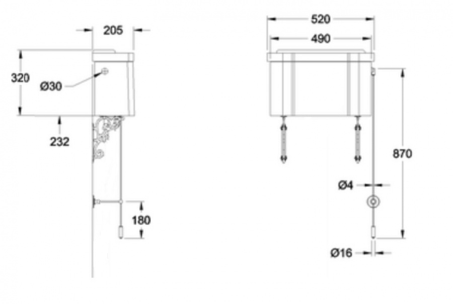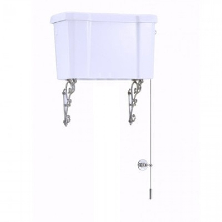 Description : Réservoir Haut à double chasse avec tirette en chrome